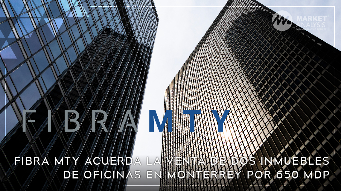 Fibra Mty (BMV: FMTY14), el primer fideicomiso de inversión en bienes raíces en México 100% asesorado y administrado internamente, anunció recientemente al público inversionista que se llevó a cabo la firma de un acuerdo sujeto al cumplimiento de ciertas condiciones para la venta de dos propiedades de oficinas conocidas como Las Torres Moradas, ubicadas en Monterrey, Nuevo León, por la cantidad de hasta 650 millones de pesos más el impuesto al valor agregado correspondiente a las edificaciones, lo cual forma parte de las operaciones para optimizar el portafolio de propiedades del Fideicomiso.